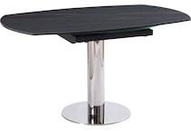 Introducing our Aralia Dining set featuring a ceramic tempered glass top table, supported by a polished Stainless Steel Pillar and Base. This table marries contemporary elegance with sturdy construction, making it the perfect focal point for your dining space. The sleek ceramic tempered glass top adds a touch of sophistication and is a breeze to clean, while the polished stainless steel pillar and base provide both stability and a sleek, modern aesthetic. The welcoming seats beckons sit back and relax. A scooped contoured seat and curved back add to its comfortable design. Upholstered in faux leather. Elevate your dining area with this stylish and enduring centerpiece, where form and function seamlessly unite.